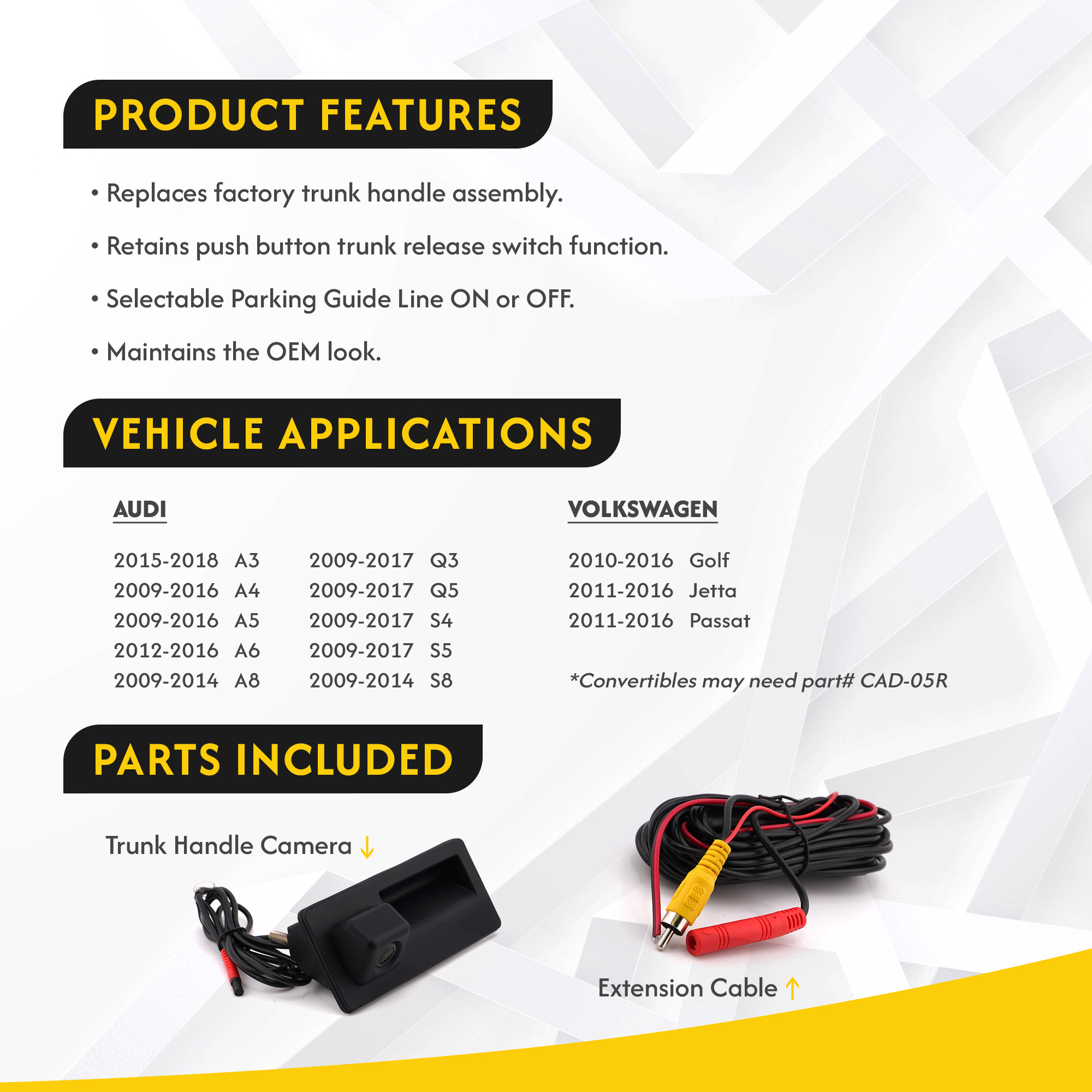 2009-2017 Audi Trunk Replacement Handle Camera for Audi/VW