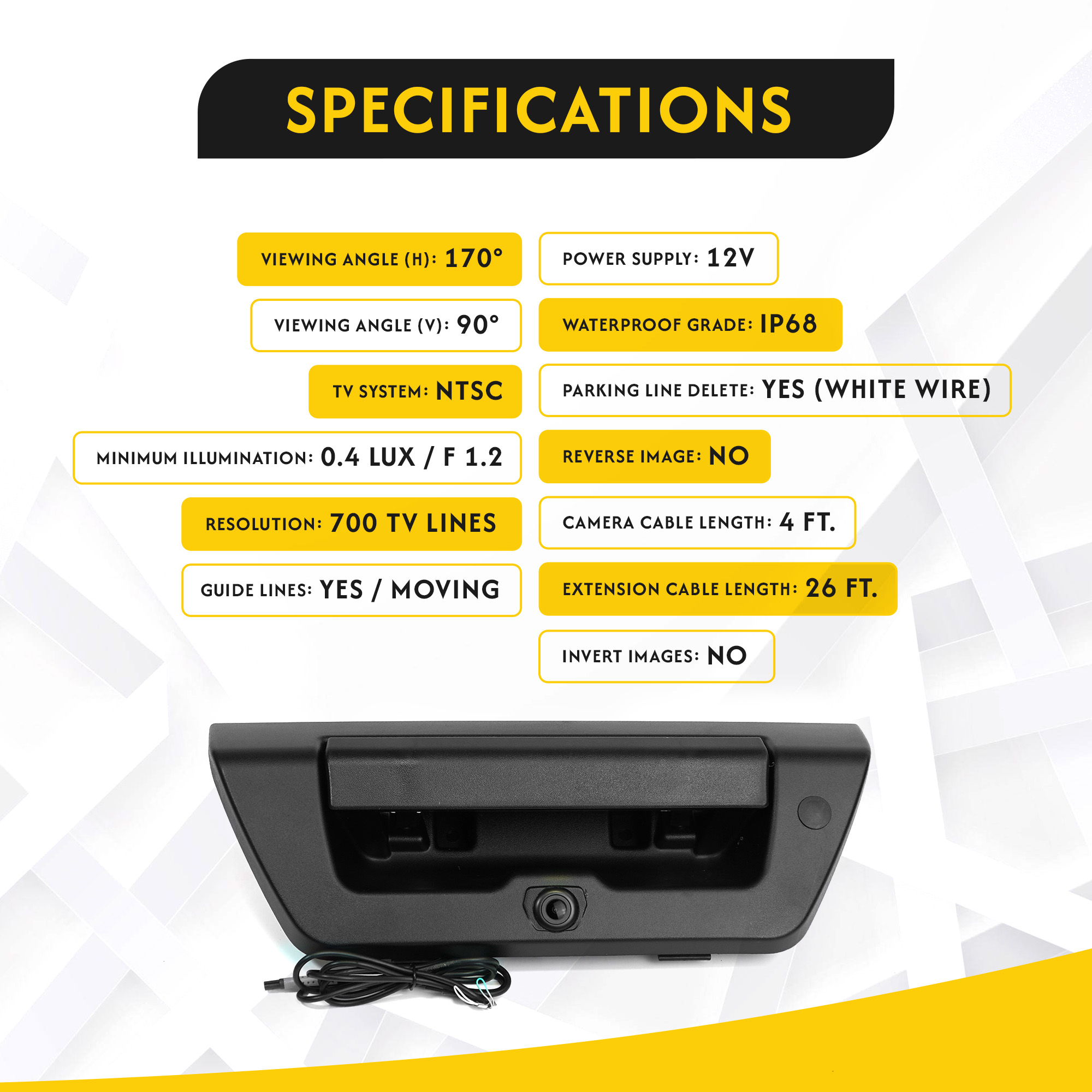 CFD-15KM | Ford Tailgate Handle Camera with Moving Parking Lines and LED Light Hole for 2015-Up F150 Trucks