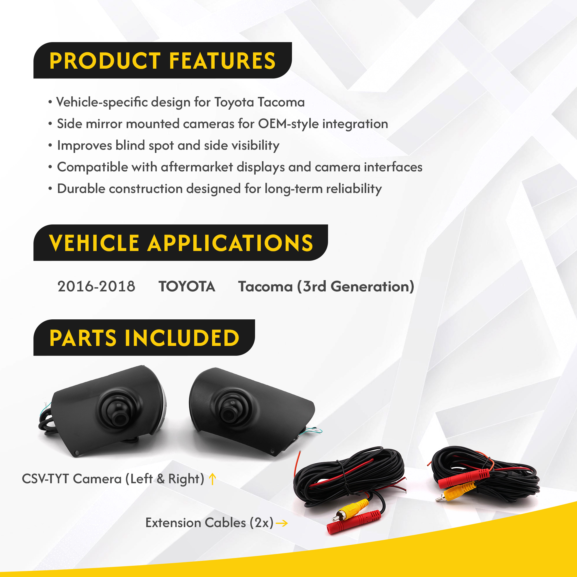 CSV-TYT | Side Mirror Mount Cameras for Toyota Tacoma