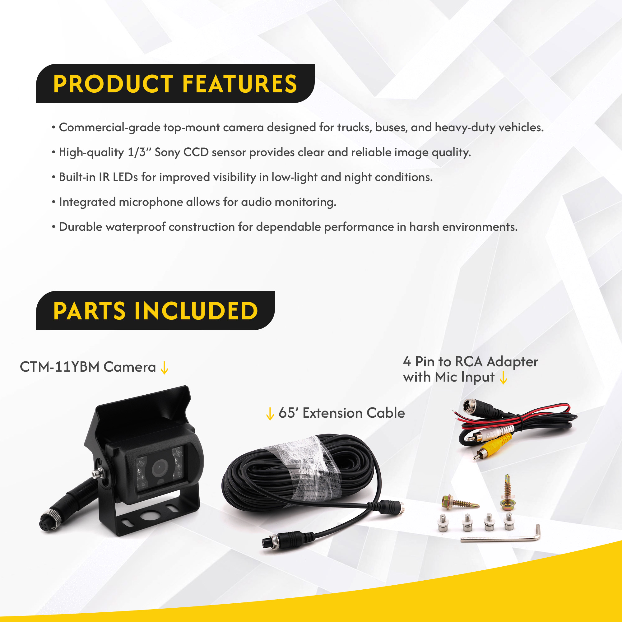 CTM-11YBM | Commercial Grade Top Mount Camera with 1/3” Sony CCD Sensor, IR LEDs and Built-in Microphone