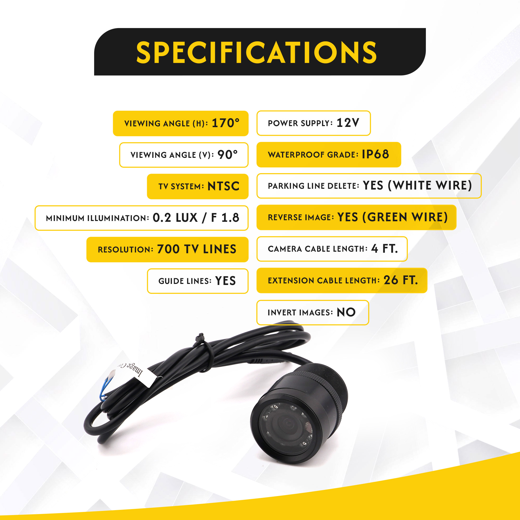 | Camera Cable Length | 3 ft. |