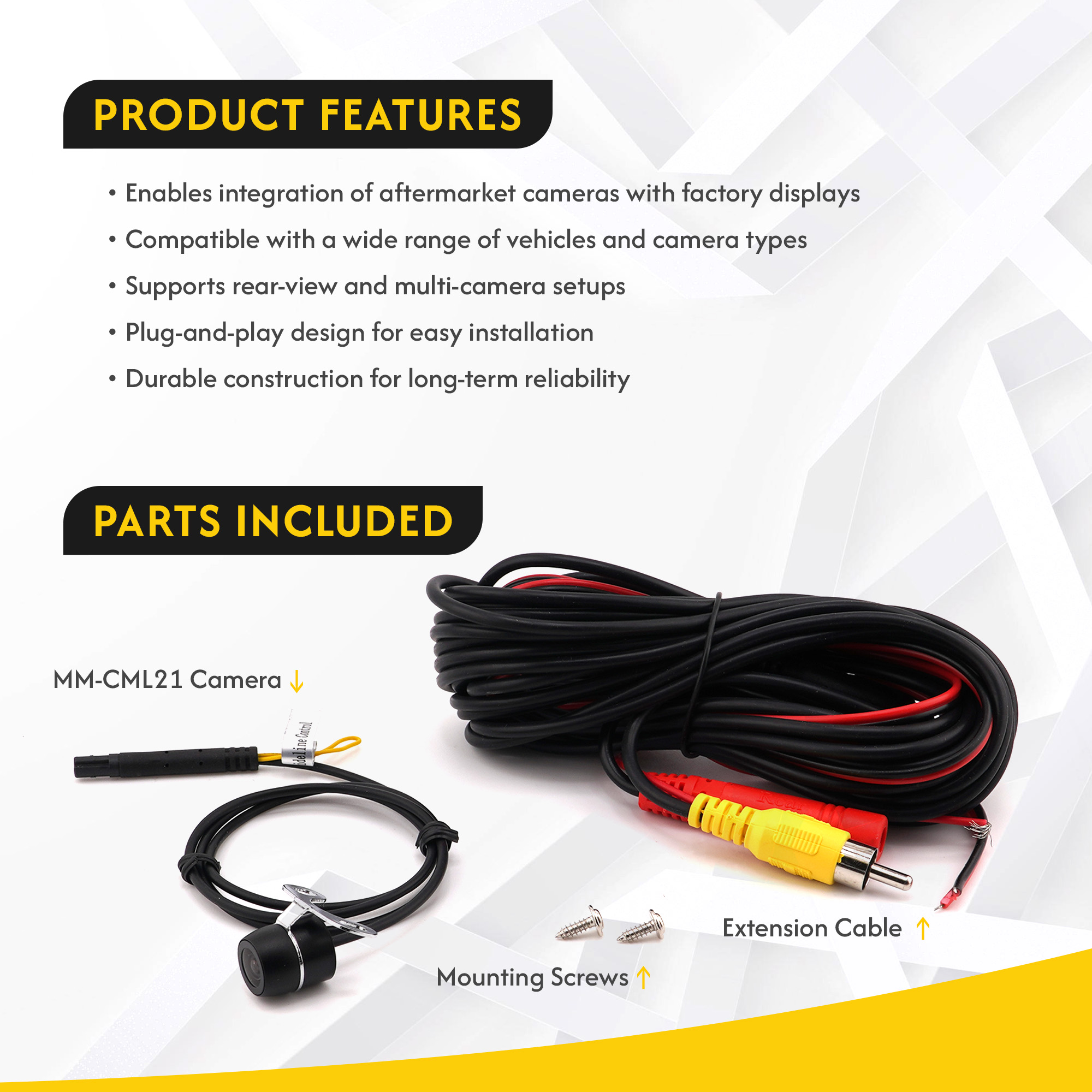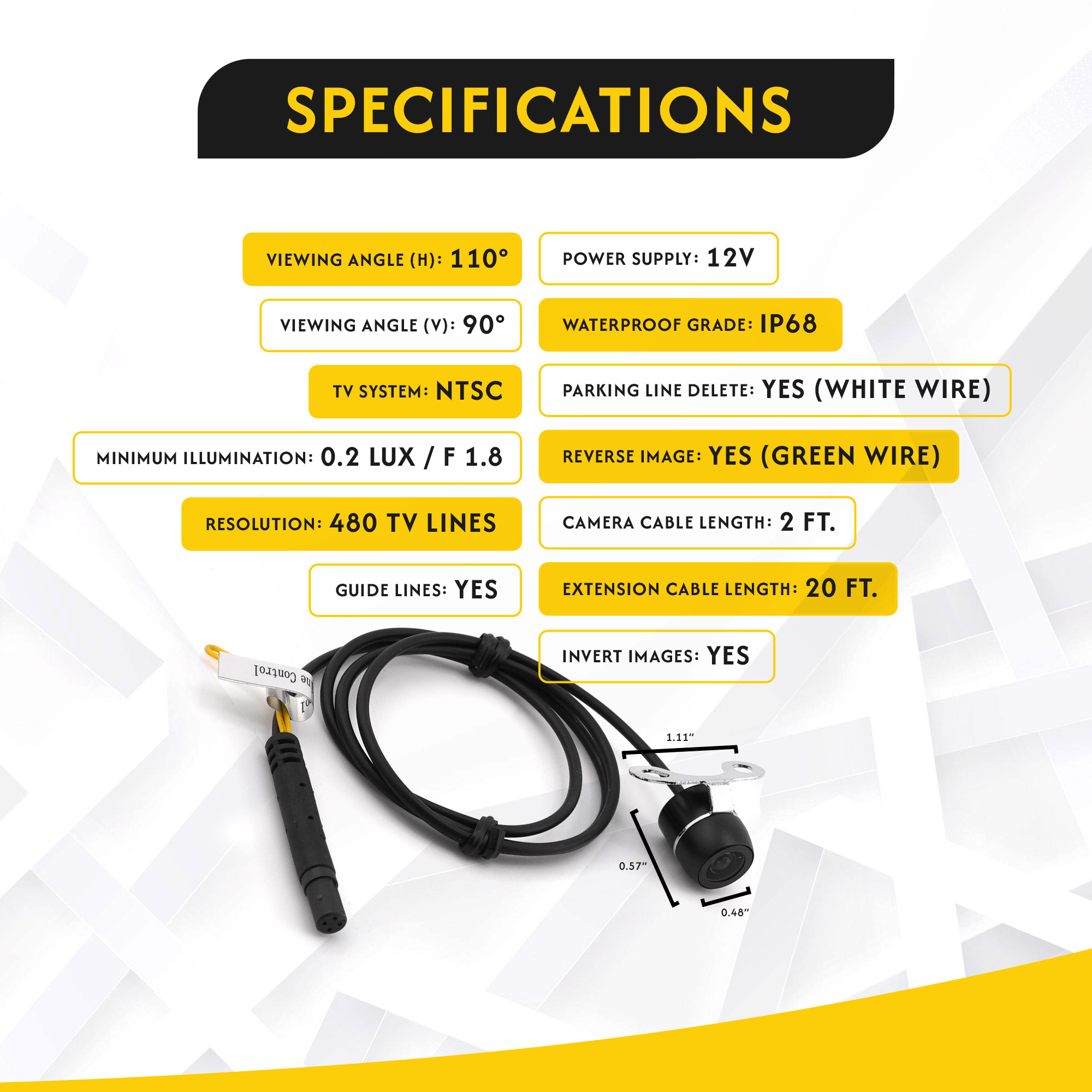 – With Parking Guide Lines that can be turned on and off. – Underlip mount with a tiny footprint. – 100 degree horizontal viewing angle.