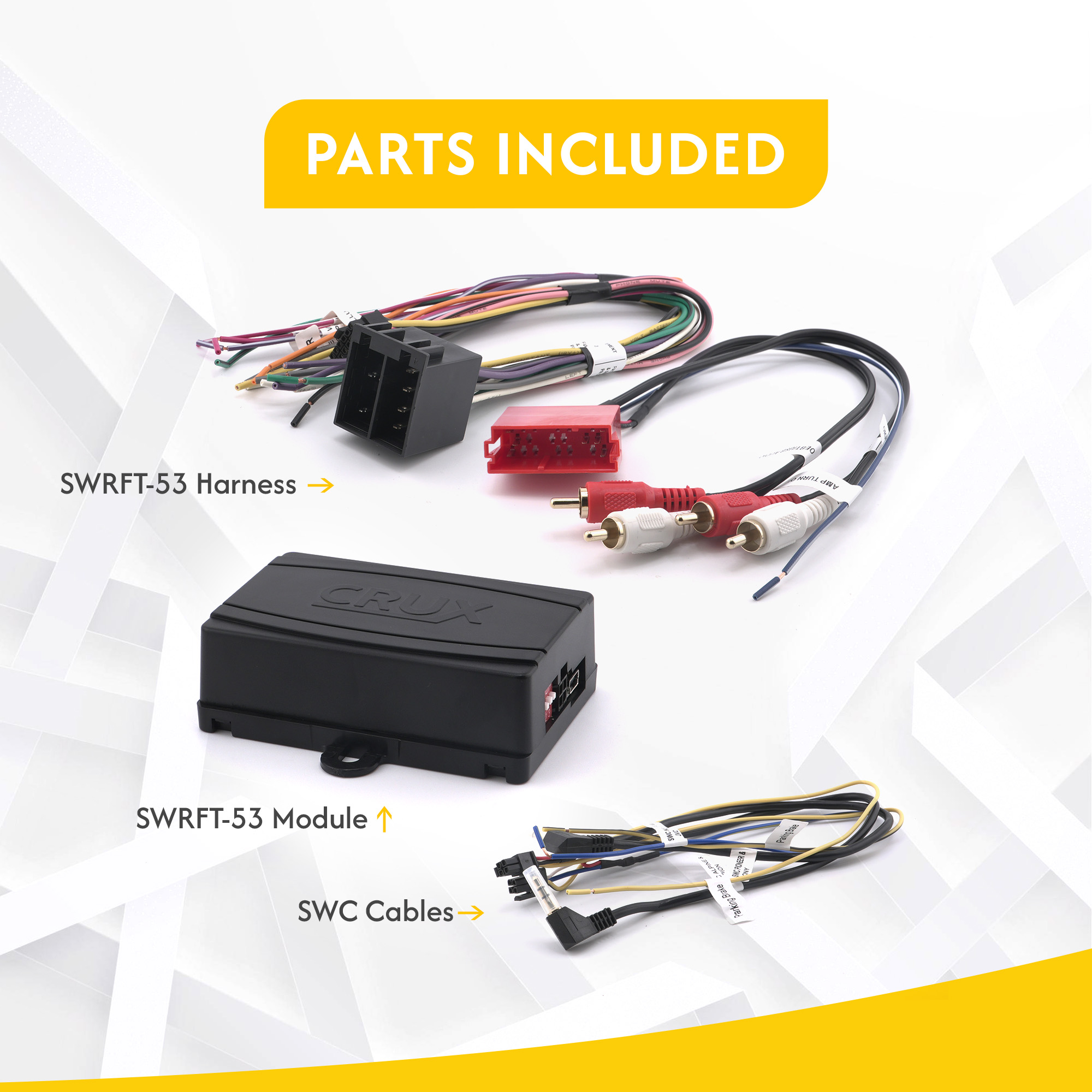 The CRUX SWRFT-53 is a premium radio replacement interface for select Fiat vehicles. It facilitates the integration of an after-market radio to retain factory features in late model Fiat cars. This enhanced interface is also pre-programmed for retention of steering wheel controls.
