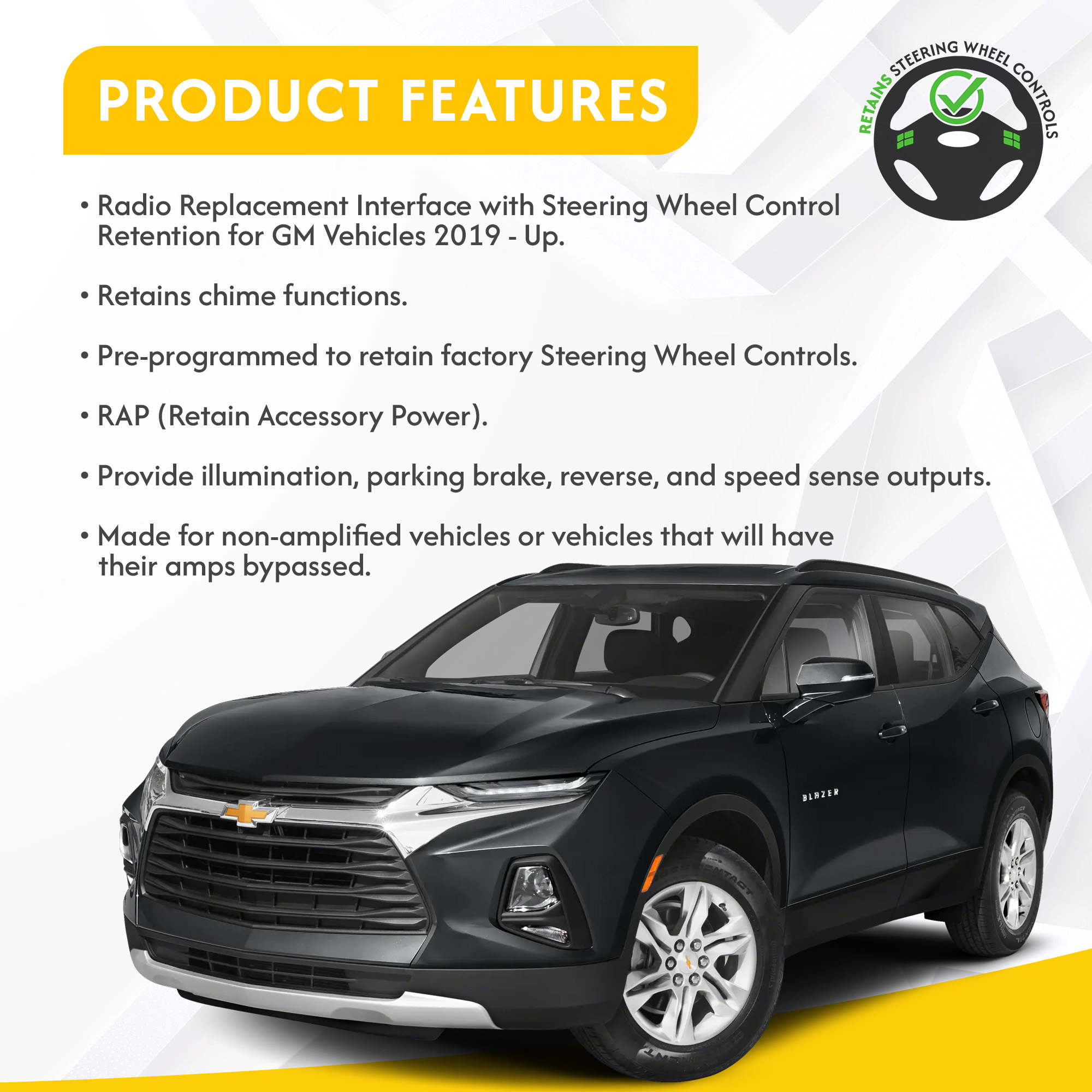 – Pre-programmed to retain factory Steering Wheel Controls