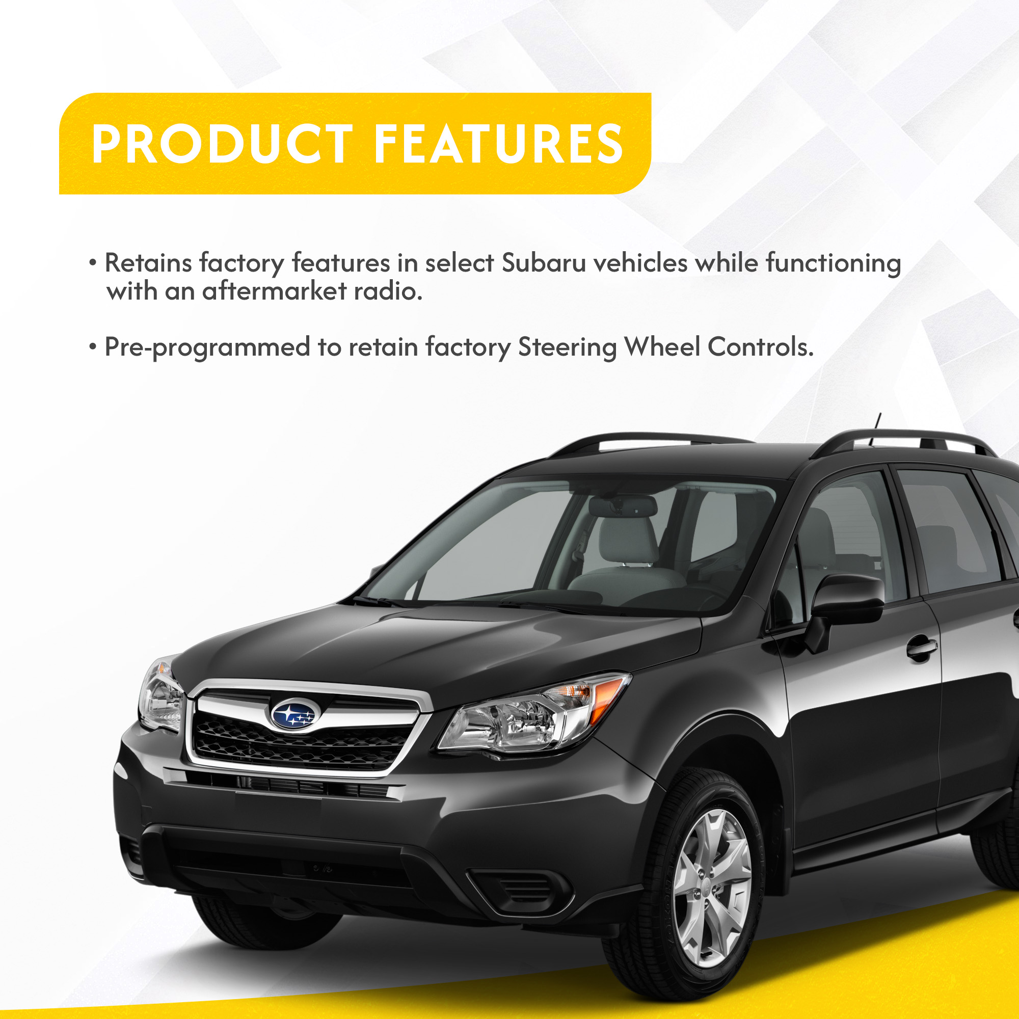 The CRUX SWRSU-38B is a radio replacement interface for select Subaru vehicles. It facilitates the integration of an after-market radio to enable retention of certain factory features when replacing a factory-installed radio and is also pre-programmed for retention of steering wheel controls.